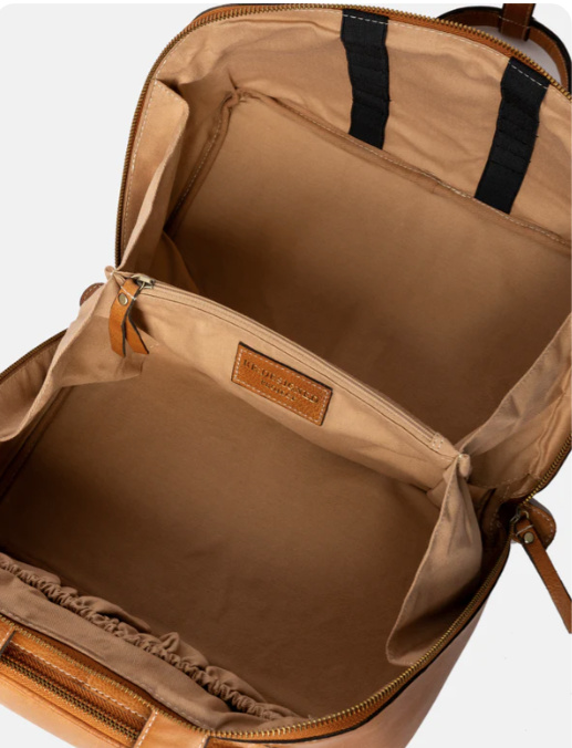 before the surface is finalized. This process preserves the leather’s natural texture, leaving each bag with unique characteristics, where no two are the same. After the dye, a light wax is applied, creating a smooth and soft finish.
