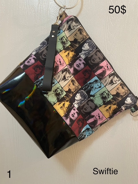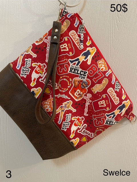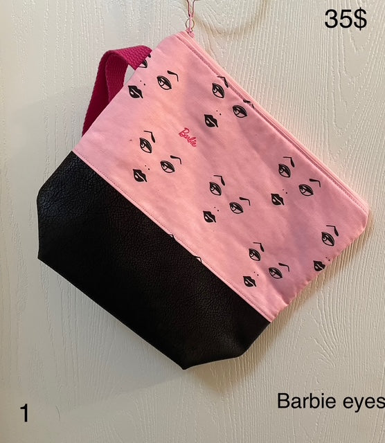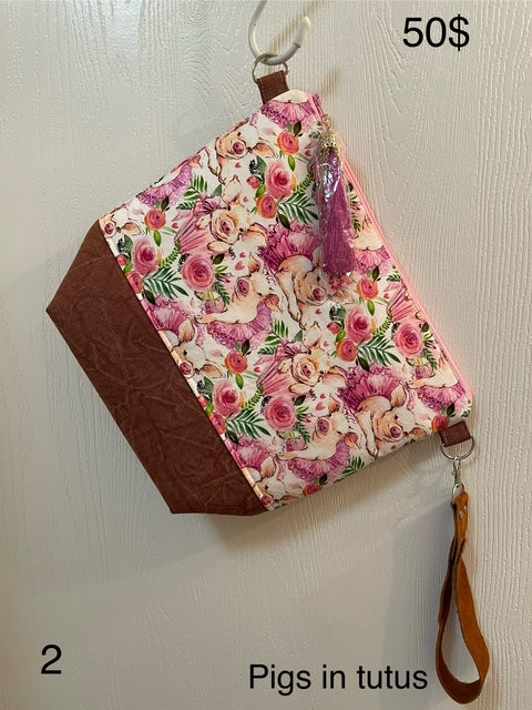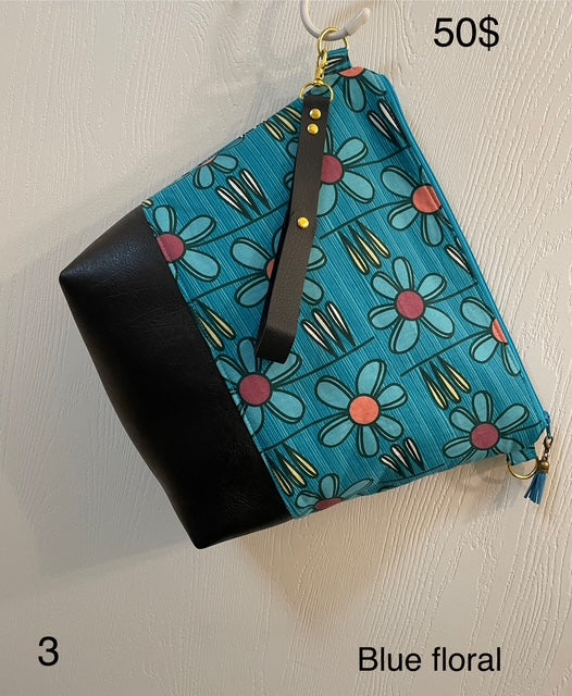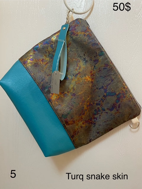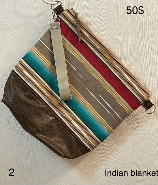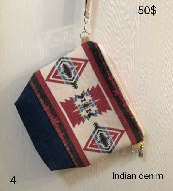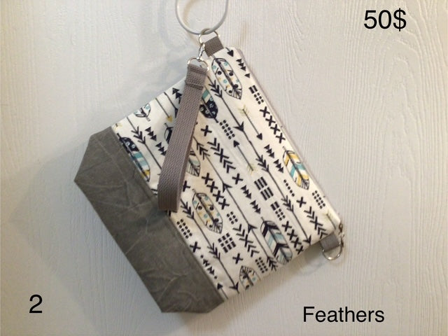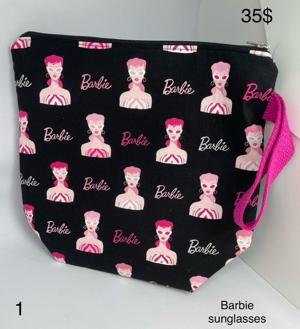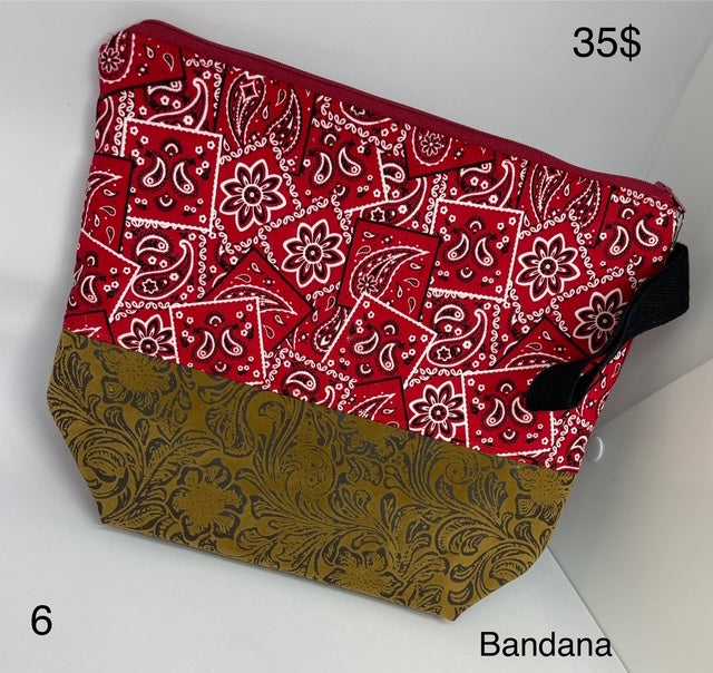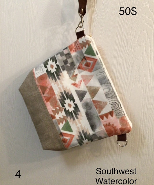 These bags have an inside pocket and a key ring. They are approximately 11" x 11" x 3". Just perfect for a 2 or 3 skeins project.