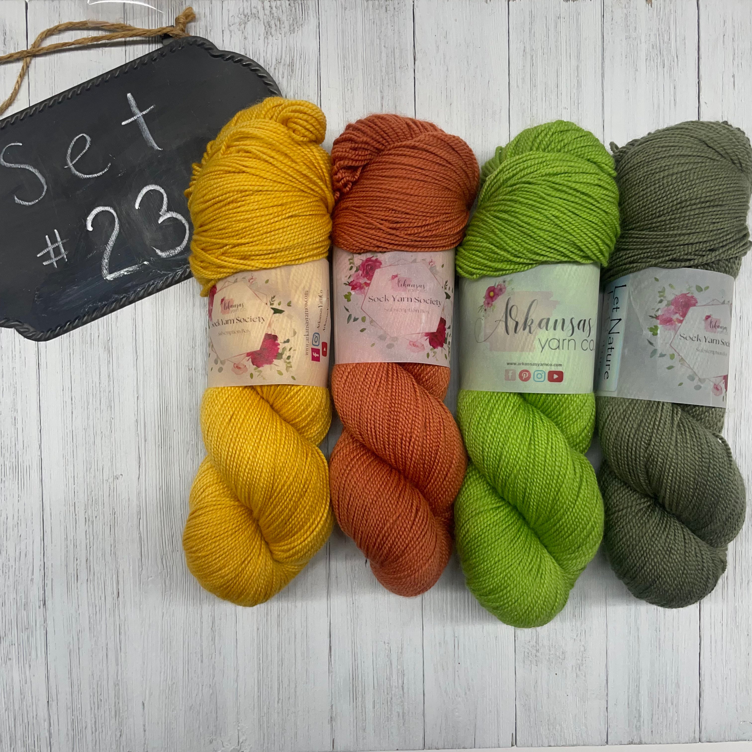 23) AYC High Twist - 85/15 SW Merino/Nylon - 399yds/100g; Let Nature be Nature, Garden Music by Katydid, Totality Worth It, Come! We Fly!