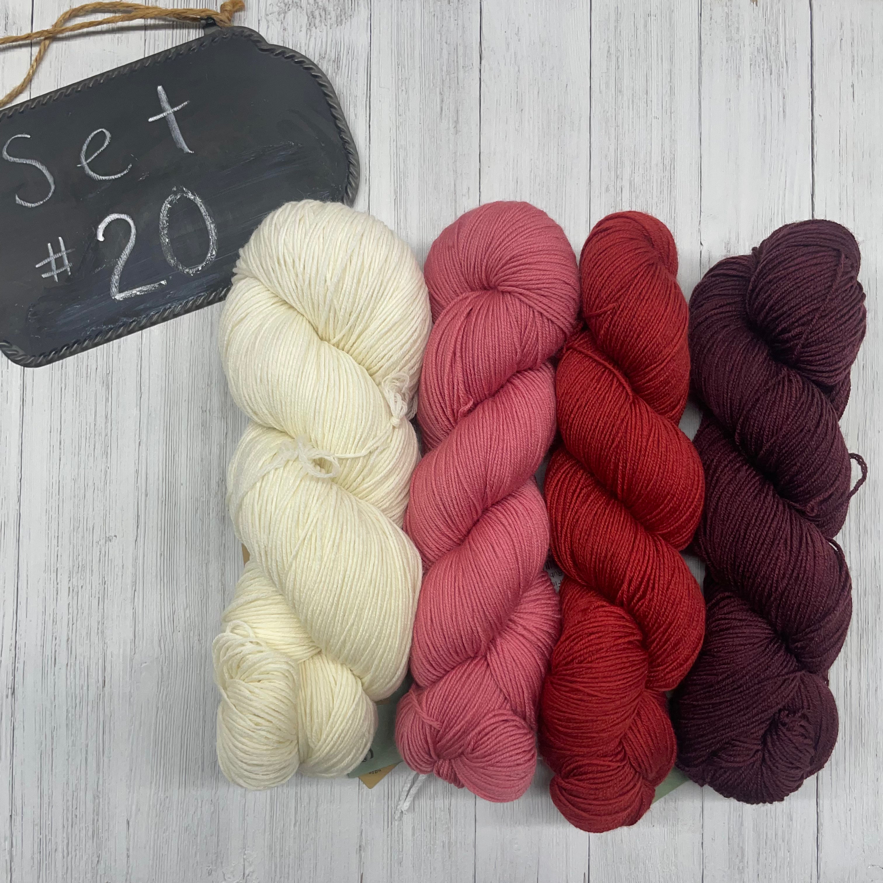 20) Urth Yarns - 100% SW Merino - 435yds/100g; Rubia, Black Grape, Cranberry, Ecru