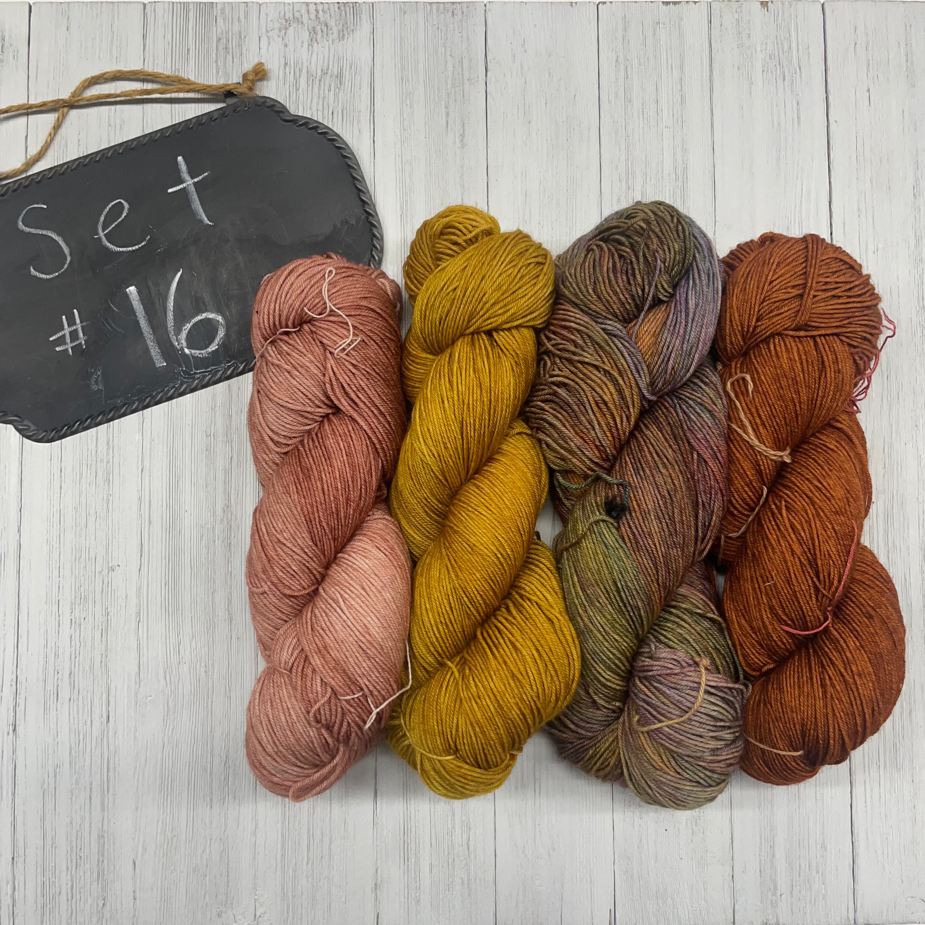 16) Malabrigo Ultimate Sock - 75/25 SW Merino/Nylon - 420yds/100g; Old Rose, Caramel, Piedras, Oro