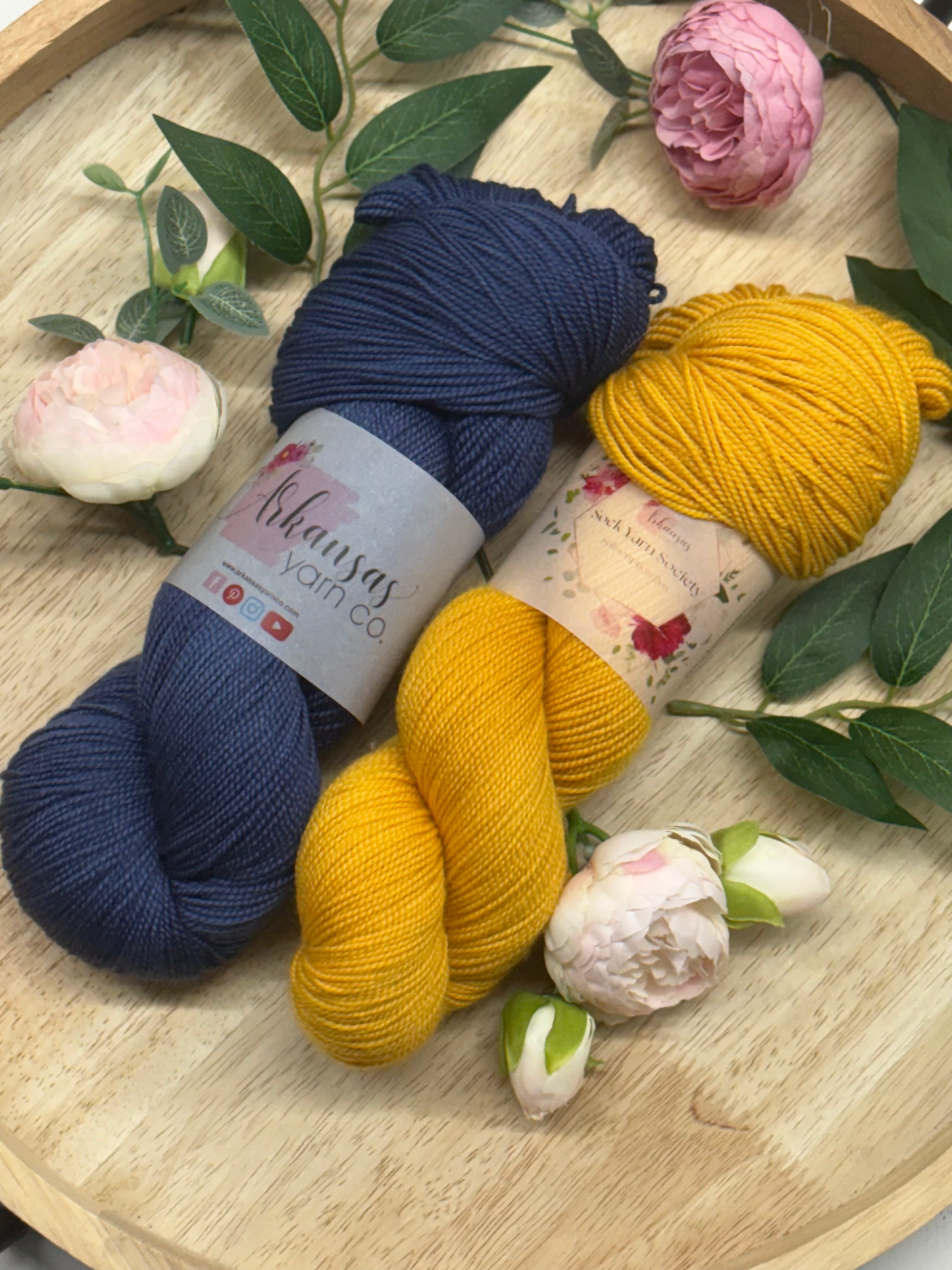 Create unique and stylish shawls with AYC 2 Skein Shawl Kits! These kits include 2 100g skeins of ArkansasYarnCo's Yummy High Twist yarn, perfect for small 2 color shawls. Let your creativity shine with this fun and versatile kit!