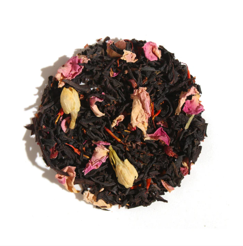 Parisian Patisserie Black- Black Tea, Red Rooibos Tea, Rose Petals, Raspberry Pieces, Jasmine Flower, Safflower, Lychee/Almond/Raspberry/Vanilla Essences CONTAINS: Almond