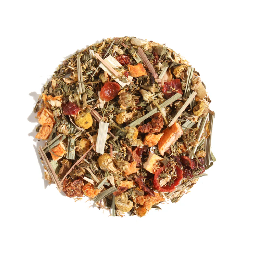 - Strawberry Immunity - Elderberry, Hibiscus, Echinacea, Apple Pieces, Black Currant, Blackberry/Strawberry/Raspberry, Strawberry Leaf, Strawberry Essence